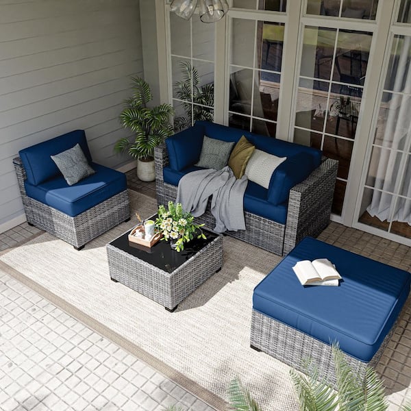 25.6 in. x 25.6 in. x 4 in. (9-Piece) Deep Seating Outdoor Lounge Chair Sectional Cushion Blue