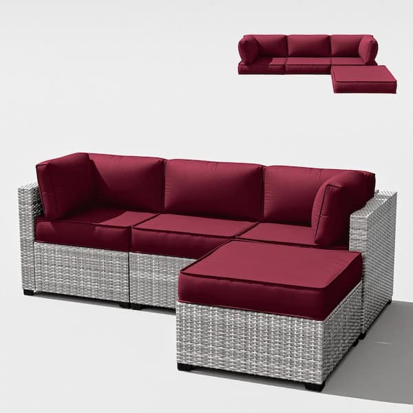 25.6 in. x 25.6 in. x 4 in. (9-Piece) Deep Seating Outdoor Lounge Chair Sectional Cushion Burgundy