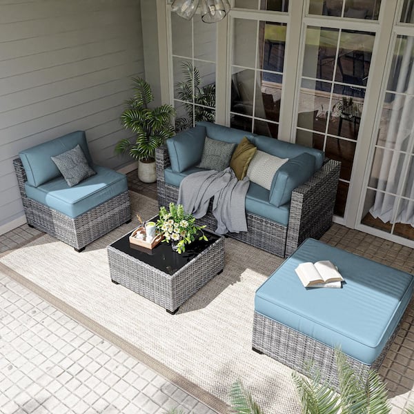 25.6 in. x 25.6 in. x 4 in. (9-Piece) Deep Seating Outdoor Lounge Chair Sectional Cushion Sky Blue