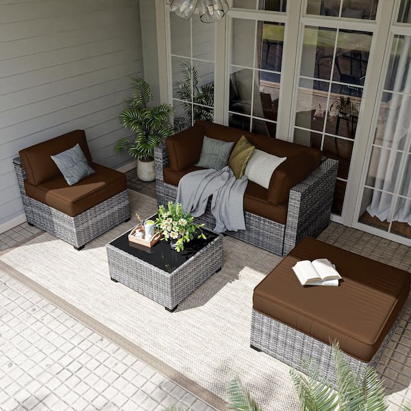 25.6 in. x 25.6 in. x 4 in. (9-Piece) Deep Seating Outdoor Sectional Replacement Cushion Chocolate
