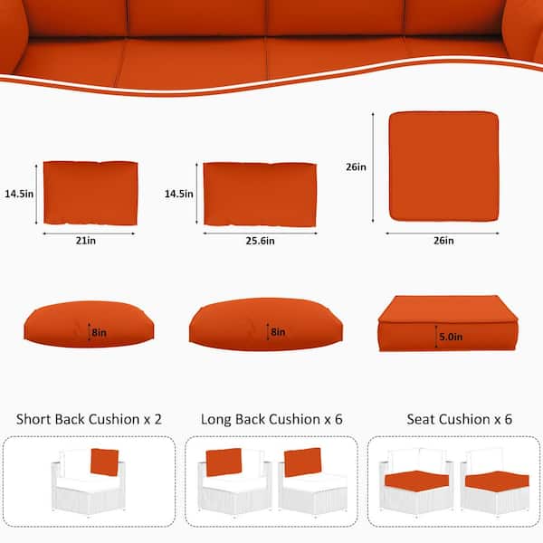 26 in. x 26 in. x 5 in. (14-Piece) Deep Seating Outdoor Sectional Replacement Cushion Orange