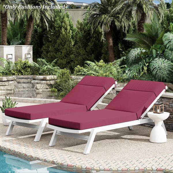 71 in. x 21 in. x 4 in. (2-Pack) Outdoor Water-Resistant Replacement Chaise Lounge Seat Cushion Fuchsia Red