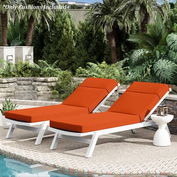 71 in. x 21 in. x 4 in. (2-Pack) Outdoor Water-Resistant Replacement Chaise Lounge Seat Cushion Orange