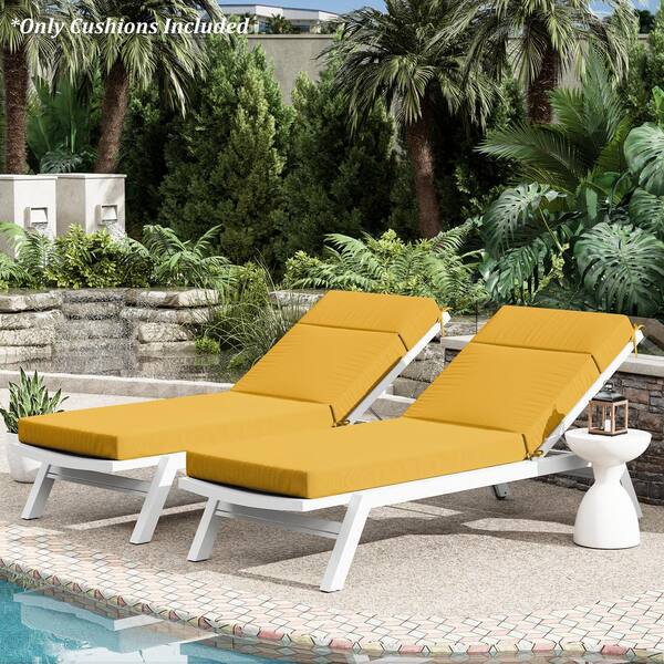 71 in. x 21 in. x 4 in. (2-Pack) Outdoor Water-Resistant Replacement Chaise Lounge Seat Cushion Yellow