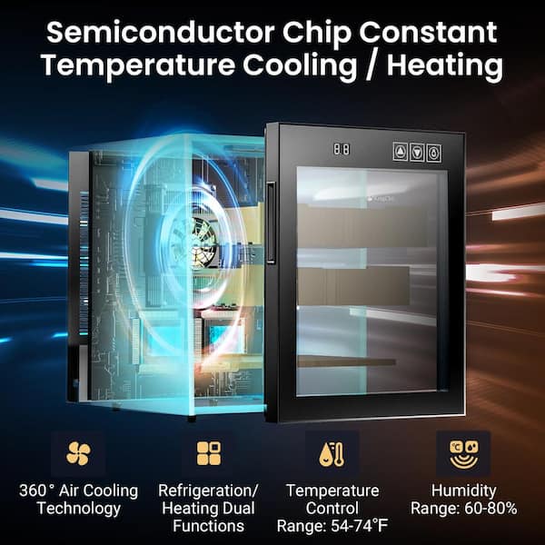15.74 in. W x 21.6 in. H 48L Black Metal Cigar Cooler, Heating Humidor with Spanish Cedar Shelf (350 Capacity)