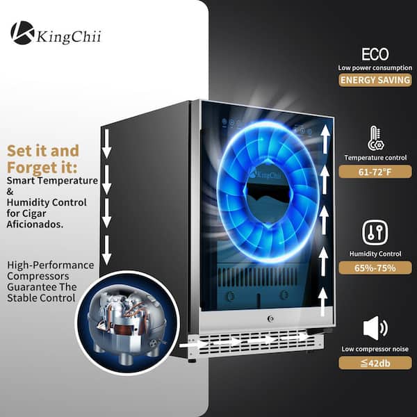 23.4 in. W x 34 in. H 145L Black Metal Cigar Humidor Temp and Humidity Control with Spanish Cedar Shelf (650 Capacity)