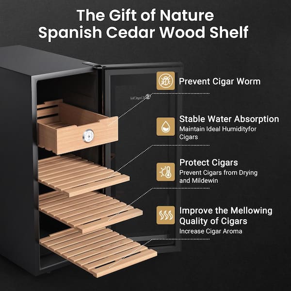 9.92 in. W x 24 in. H 33L Black Metal Cigar Cooler, Heating Humidor with Spanish Cedar Shelf (250 Capacity)