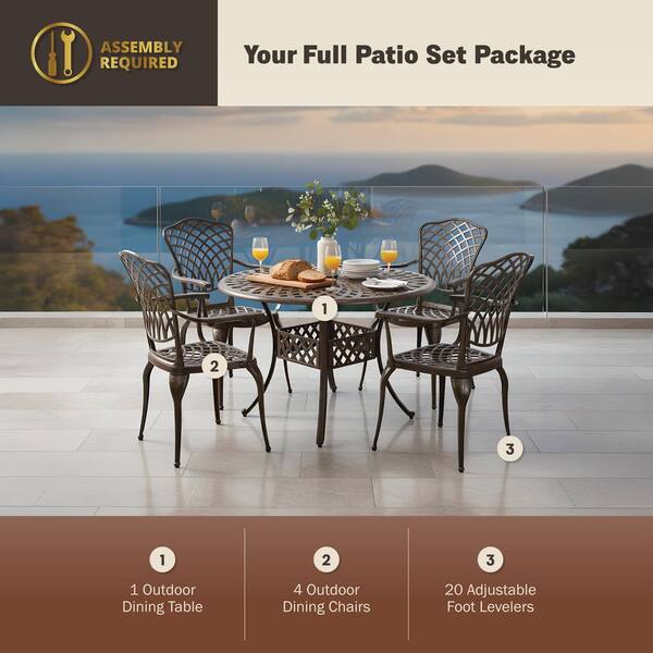 5-Piece Cast Aluminum Outdoor Patio Dining Table Set with a Lattice Weave Design in Bronze