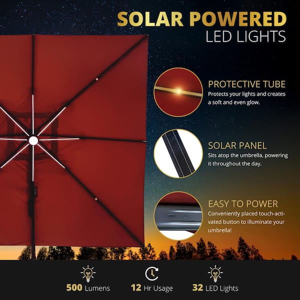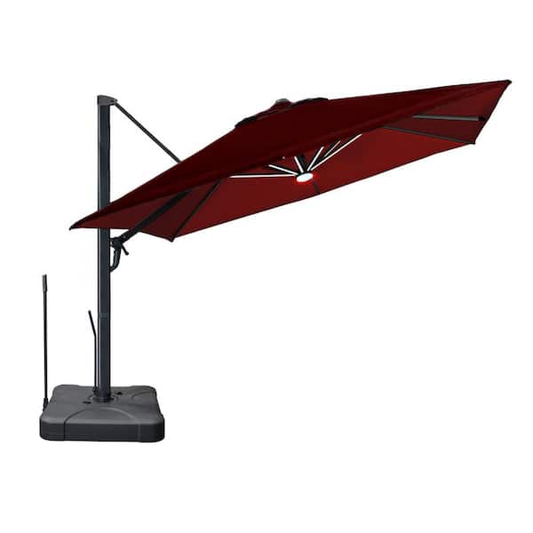 Astra 10 ft. Aluminum Cantilever Solar Tilt Offset Patio Umbrella with LED Lights in Red