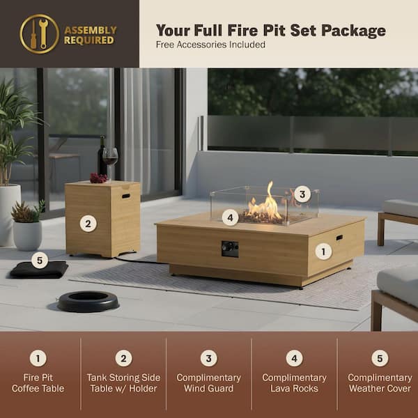 Harmony 43 in. Canary Bamboo Outdoor Fire Pit Table With Propane Tank Storage Side Table