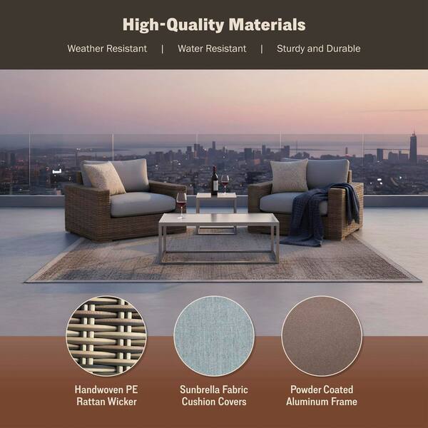 Larry Lava Gray Premier Rattan Wicker Deep Seating Outdoor Lounge Chair with Soft Light Blue Cushions
