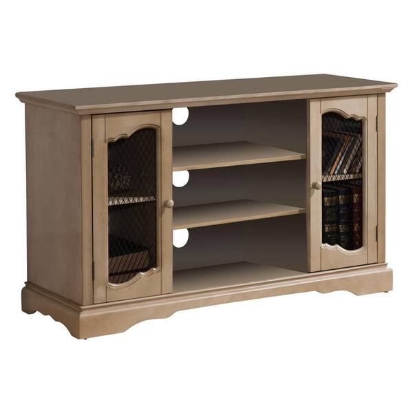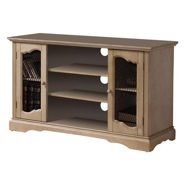 42 in. Antique White and Beige Composite TV Stand Fits TVs Up to 55 in. with Storage Doors