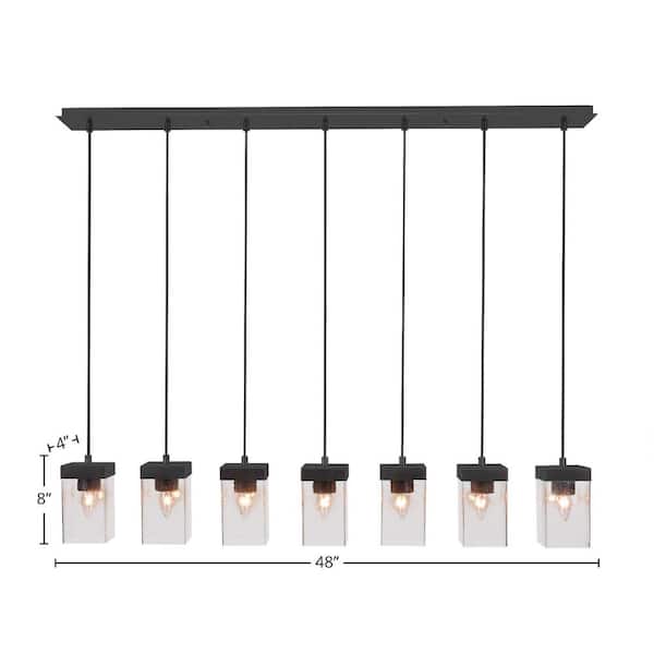 Kingsport 60-Watt 7 Light Espresso Linear Chandelier Pendant Light with 4 in. Clear Bubble Glass Shades No Bulb Included