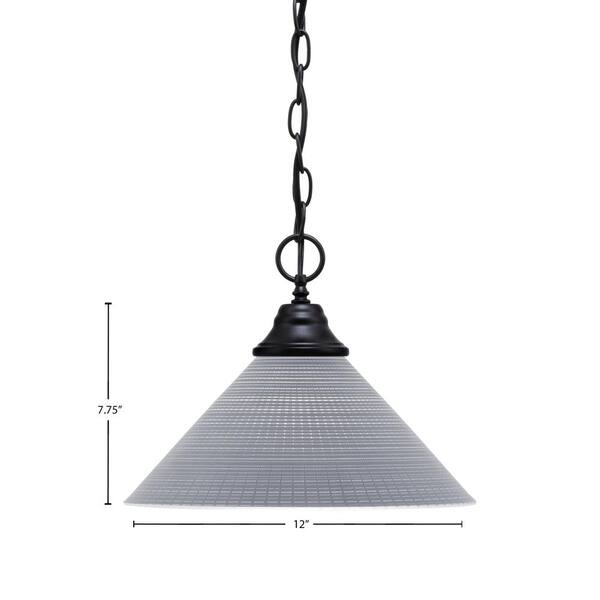 Kingston 100-Watt 1 Light Matte Black Finish Shaded Pendant Light with 12 in. Gray Matrix Glass Shade, No Bulb Included