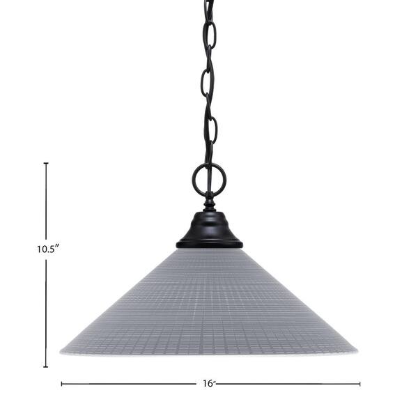 Kingston 100-Watt 1 Light Matte Black Finish Shaded Pendant Light with 16 in. Gray Matrix Glass Shade, No Bulb Included
