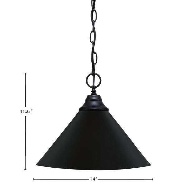 Kingston 100-Watt 1 Light Matte Black Finish Shaded Pendant Ligth with 14 in. Matte Black Metal Shade, No Bulb Included