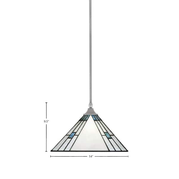 Kingston 14 in. 1-Light Brushed Nickel Stem Pendant Light with 14 in. Sky Ice Art Glass Shade, no bulb included
