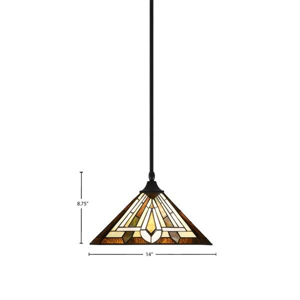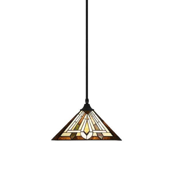 Kingston 14 in. 1-Light Matte Black Stem Pendant Light with 14 in. Tahoe Art Glass Shade, no bulb included