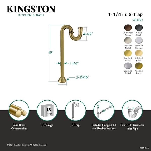 1-1/4 in. Brass S-Trap, 18-Gauge in Polished Chrome