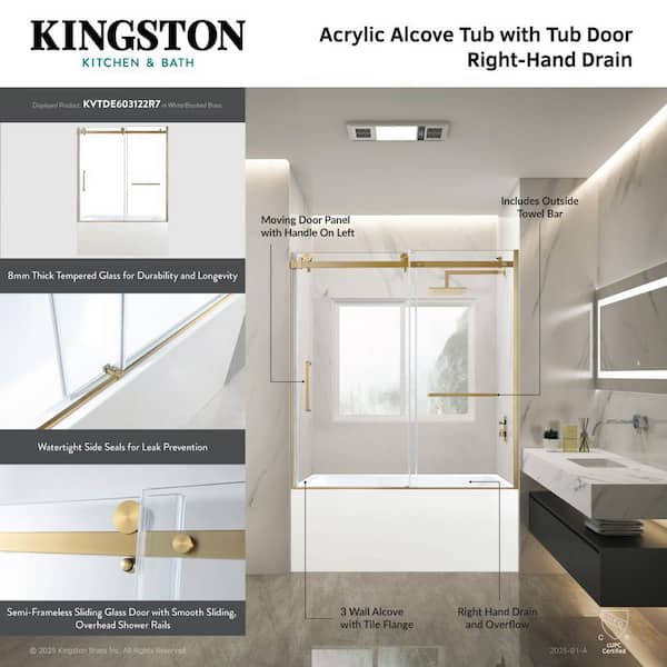 60 in. x 30.7 in. Acrylic Rectangular Alcove Soaking Bathtub with Right Drain in White/Matte Black