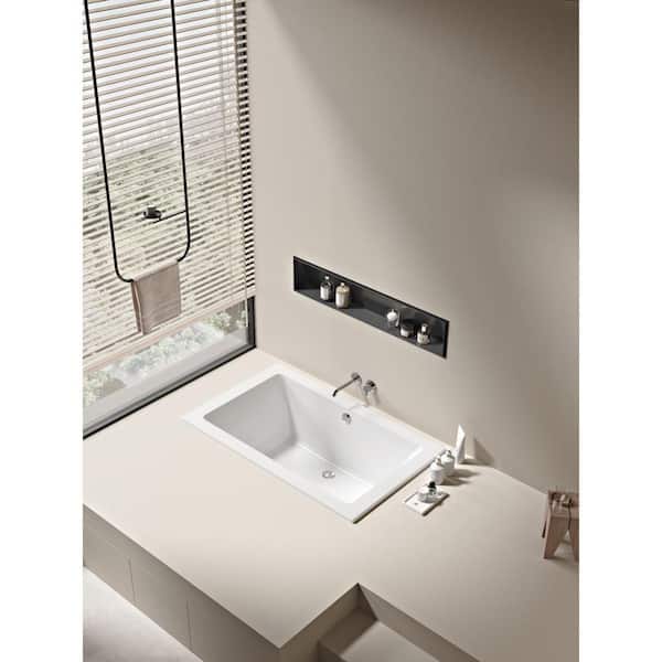 Aqua Eden 59.1 in. x 36 in. Acrylic Rectangular Drop-In Soaking Bathtub with Center Drain in Glossy White