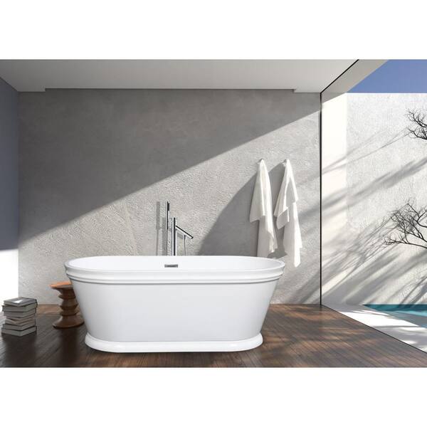 Aqua Eden 59.9 in. x 28.6 in. Acrylic Oval Flatbottom Freestanding Soaking Bathtub with Drain in Glossy White