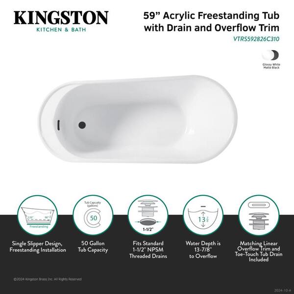 • Freestanding 59 in. x 28.4 in bathtub with 50 gal. capacity