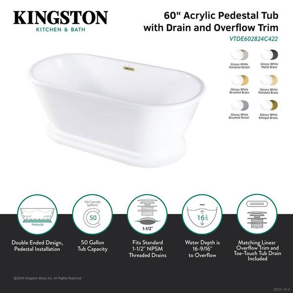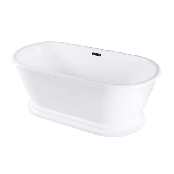 Aqua Eden 60 in. x 27.9 in. Acrylic Flatbottom Soaking Freestanding Bathtub in Glossy White/Matte Black with Drain