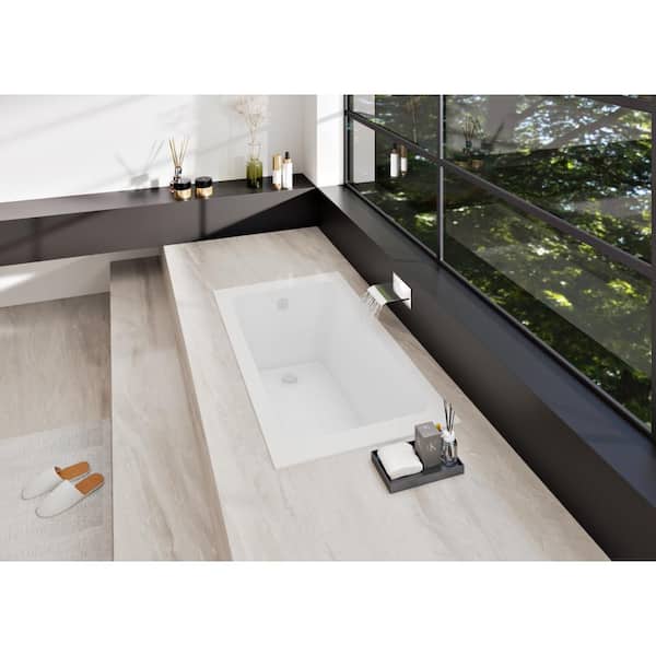 Aqua Eden 60 in. x 31.9 in. Acrylic Rectangular Drop-In Soaking Bathtub with Reversible Drain in Glossy White