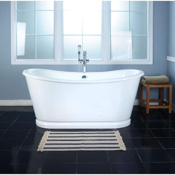 Aqua Eden 63.8 in. x 29.5 in. Cast Iron Oval Flatbottom Freestanding Soaking Bathtub with Drain in White