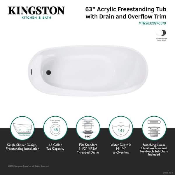 Aqua Eden 63 in. x 29 in. Acrylic Flatbottom Freestanding Soaking Bathtub in White/Matte Black with Drain