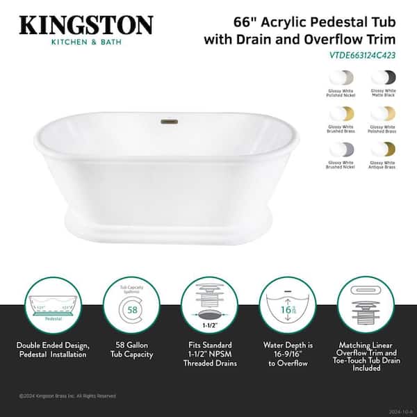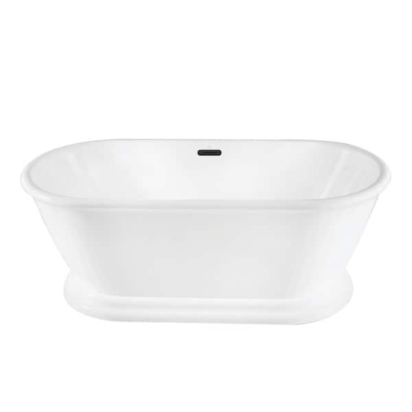 Aqua Eden 66 in. x 30.5 in. Acrylic Flatbottom Soaking Freestanding Bathtub in Glossy White/Matte Black with Drain