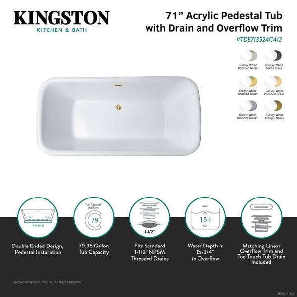 • Freestanding 71 in. x 29.1 in bathtub with predrilled drain