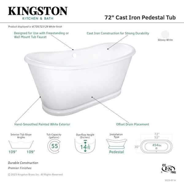 Aqua Eden 72.5 in. x 30.1 in. Cast Iron Oval Flatbottom Freestanding Soaking Bathtub with Drain in White