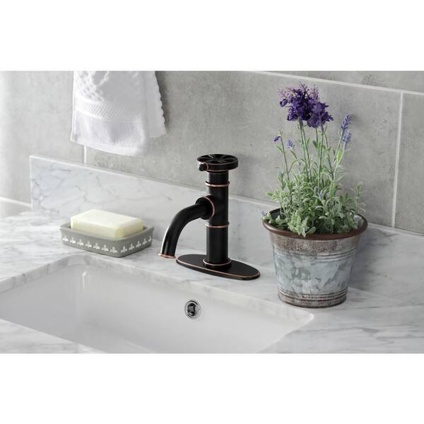 Belknap Single-Handle Single-Hole Bathroom Faucet with Push Pop-Up and Deck Plate in Naples Bronze