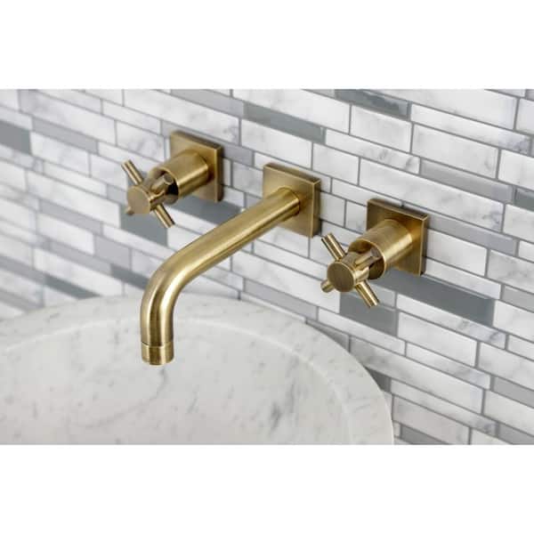 Concord 2-Handle Wall-Mount Bathroom Faucets in Antique Brass