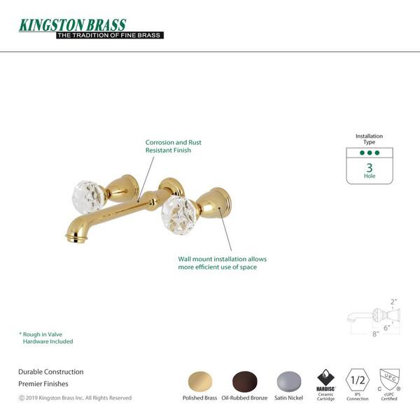 Crystal Knob 2-Handle Wall-Mount Roman Tub Faucet Filler in Brushed Nickel