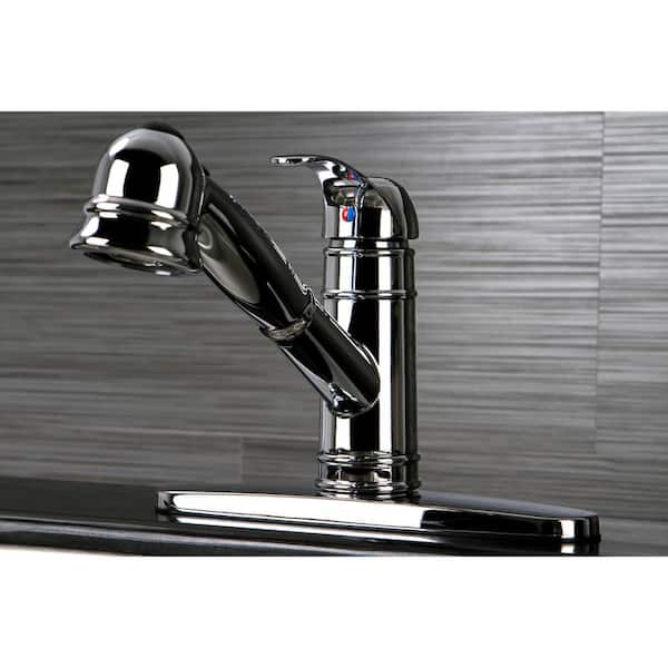 Eden Single-Handle Deck Mount Gooseneck Pull Out Sprayer Kitchen Faucet with Deck Plate Included in Polished Chrome