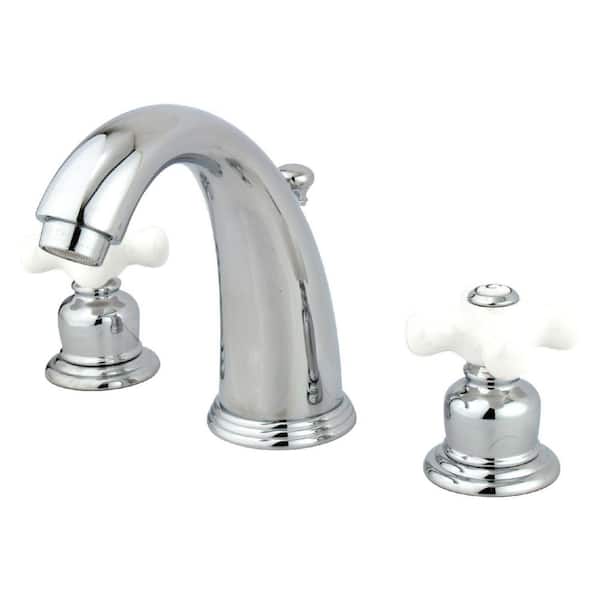 English Country 2-Handle 8 in. Widespread Bathroom Faucets with Plastic Pop-Up in Polished Chrome