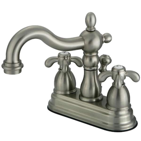 French Country 4 in. Centerset 2-Handle Bathroom Faucet with Brass Pop-Up in Brushed Nickel