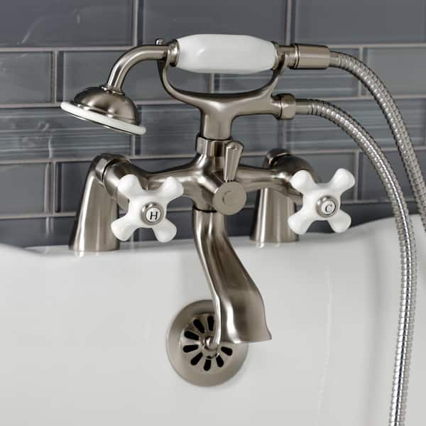 Kingston 3-Handle Deck-Mount Clawfoot Tub Faucet with Hand Shower in Brushed Nickel