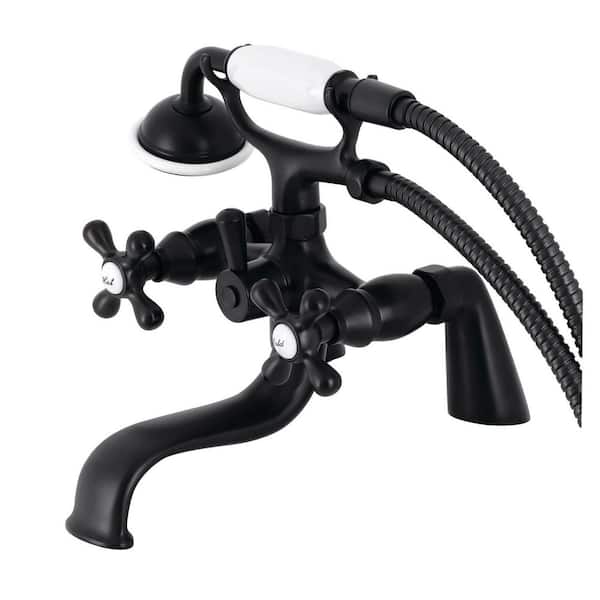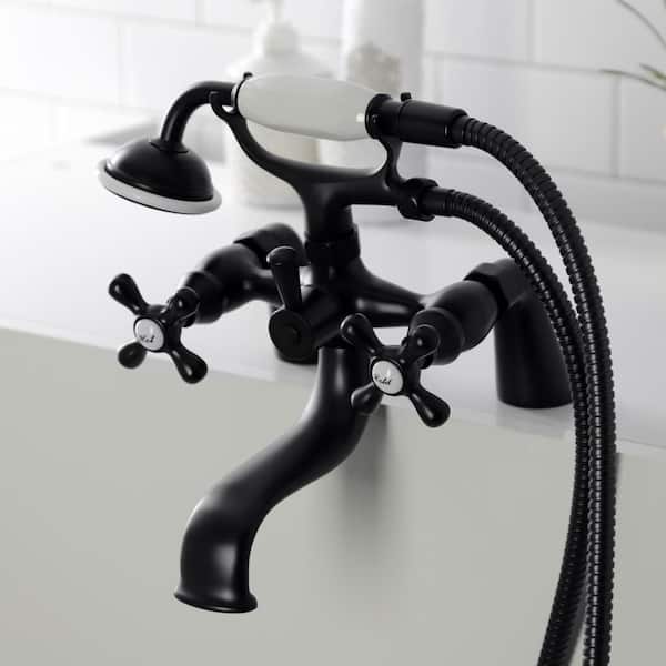 Kingston 3-Handle Deck-Mount Clawfoot Tub Faucets with Handshower in Matte Black