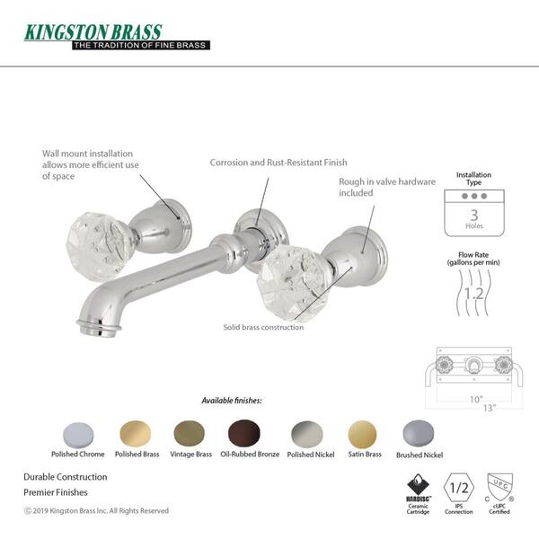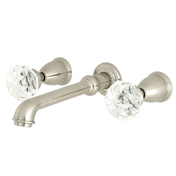 Krystal Onyx 2-Handle Wall Mount Bathroom Faucet in Brushed Nickel
