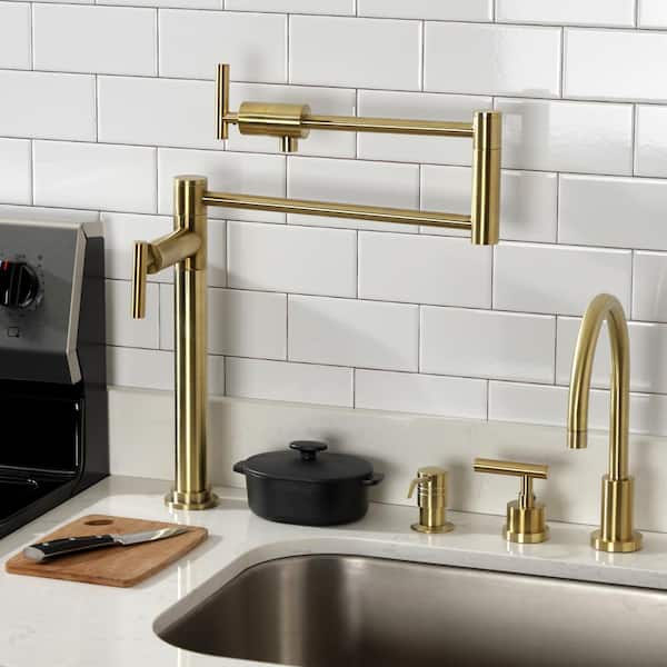 Manhattan Deck Mount Pot Filler Faucet in Brushed Brass