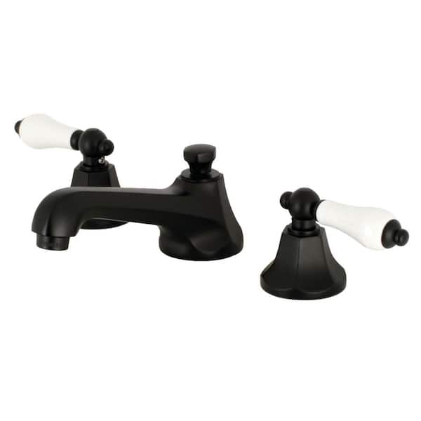 Metropolitan Porcelain Lever 8 in. Widespread 2-Handle Bathroom Faucet in Matte Black