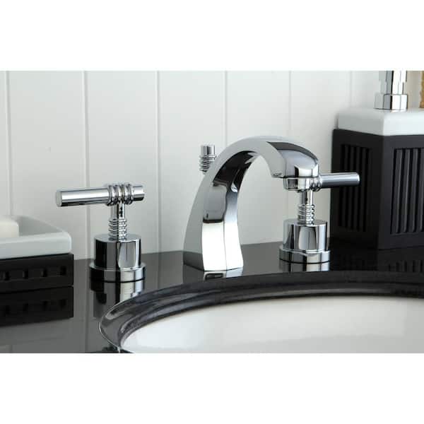 Milano 8 in. Widespread 2-Handle Bathroom Faucets with Brass Pop-Up in Polished Chrome