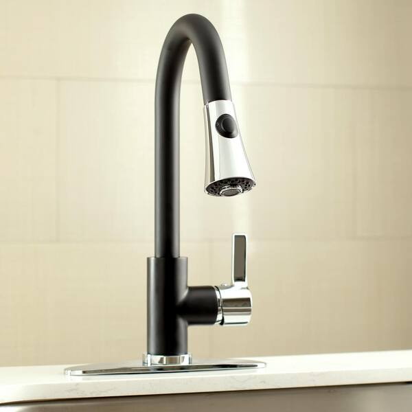 Modern Single-Handle Pull-Down Sprayer Kitchen Faucet in Black and Chrome