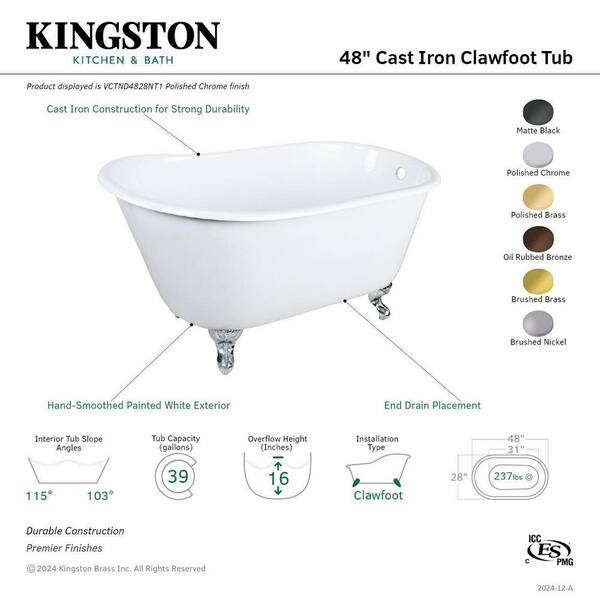 Onamia 48 in. x 27.9 in. Cast Iron Oval Clawfoot Soaking Bathtub in White/Polished Brass