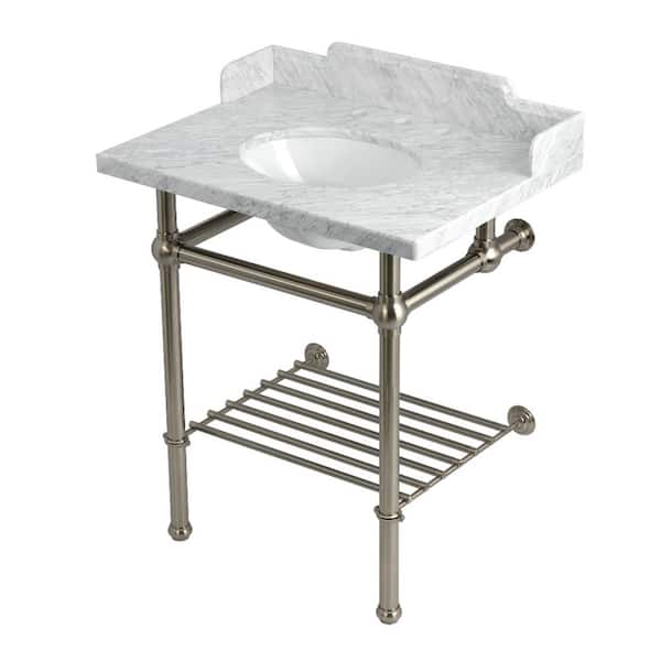 Pemberton 30 in. Marble Console Sink with Brass Legs in Marble White/Brushed Nickel