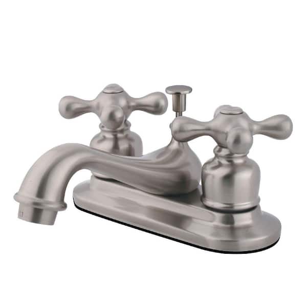 Restoration 4 in. Centerset 2-Handle Bathroom Faucet with Plastic Pop-Up in Brushed Nickel